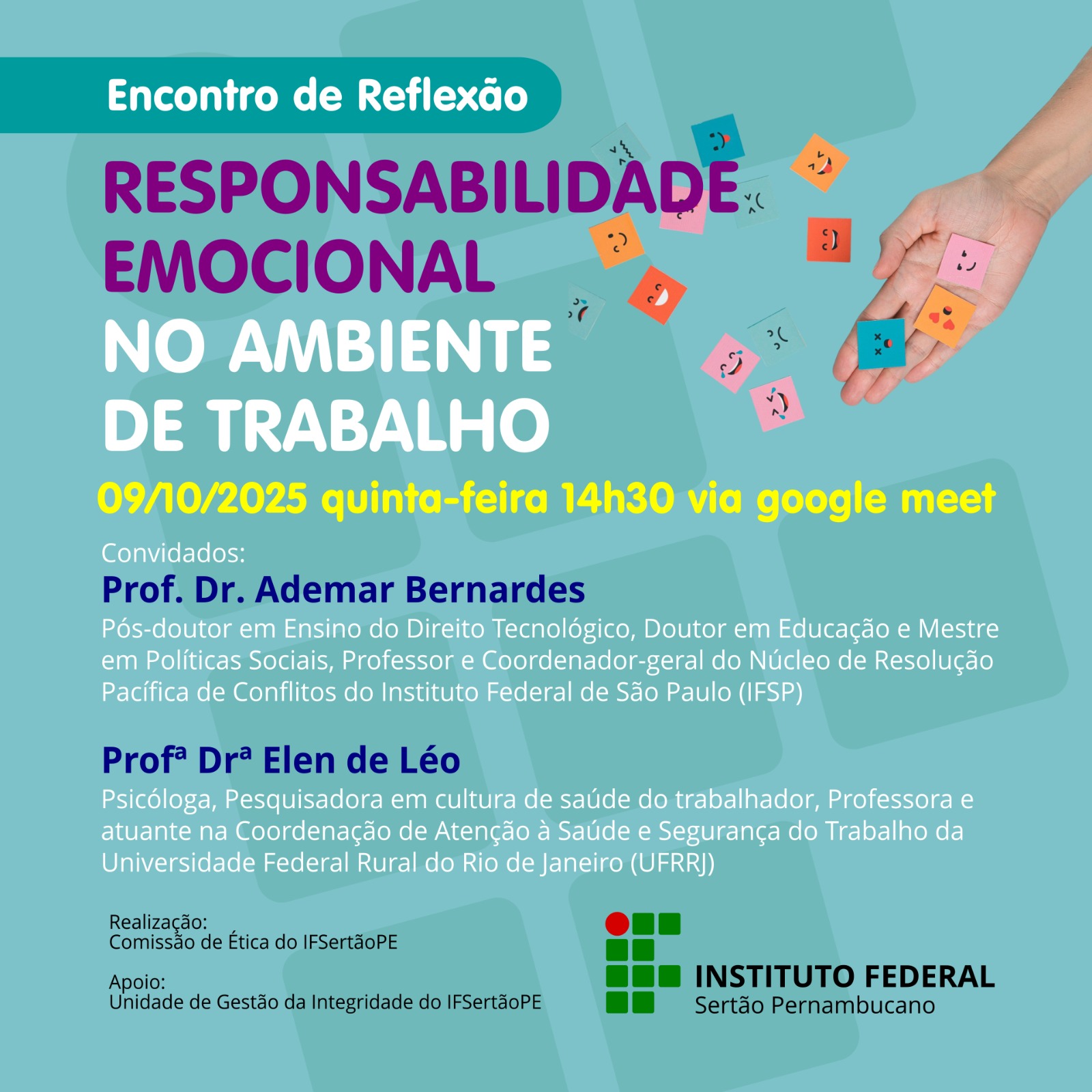 Em um mundo onde a saúde mental ganha cada vez mais destaque, a responsabilidade emocional surge como um pilar fundamental para a harmonia e a eficiência nas relações interpessoais. Pensando nisso, a Comissão de Ética do IFSertãoPE realizará, na próxima quinta-feira (09), às 14h30, um bate-papo online com o tema “Responsabilidade Emocional no Ambiente de Trabalho: um diálogo necessário para…