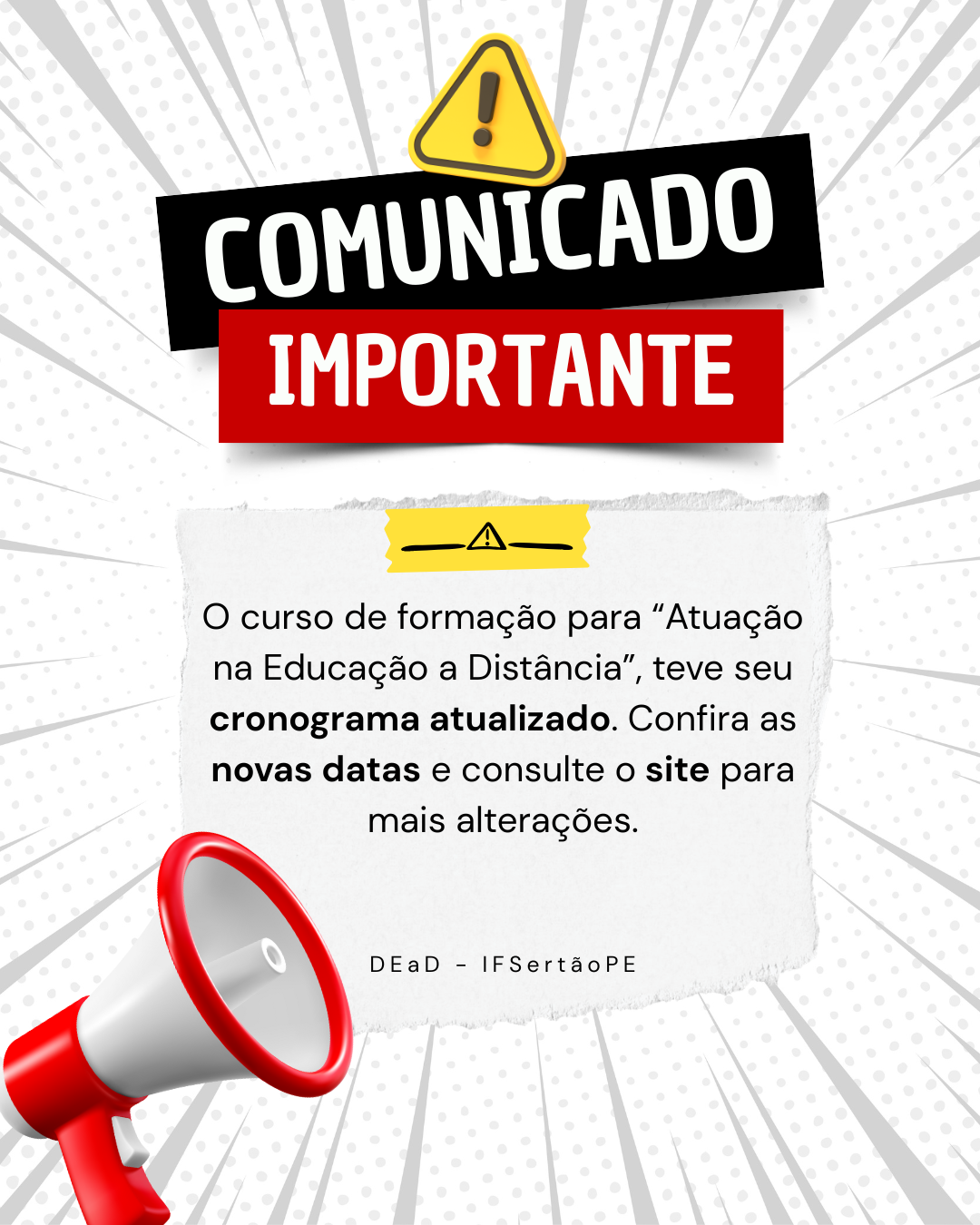 Comunicado sobre atualização de cronograma do curso de Formação Continuada “Atuação na Educação a Distância” – Edital nº 32/2025