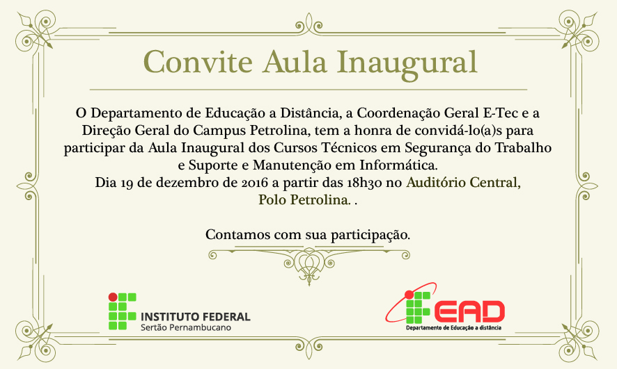 A Coordenação de Educação a Distância (Cead) do IFSertãoPE divulgou, nesta terça-feira (13), o resultado do Processo Seletivo Simplificado para a contratação de coordenadores dos cursos técnicos de ‘Segurança do Trabalho’ e ‘Manutenção e Suporte em Informática’, na modalidade Educação a Distância, referente ao edital 05/2017.