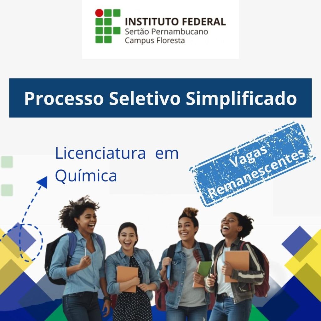 O Instituto Federal do Sertão Pernambucano (IFSertãoPE), por meio do campus Floresta, publicou nesta segunda-feira (2) o Edital nº 04/2026, que trata do Processo Seletivo Simplificado para preenchimento de vagas remanescentes do curso de Licenciatura em Química, com ingresso no primeiro semestre letivo de 2026.