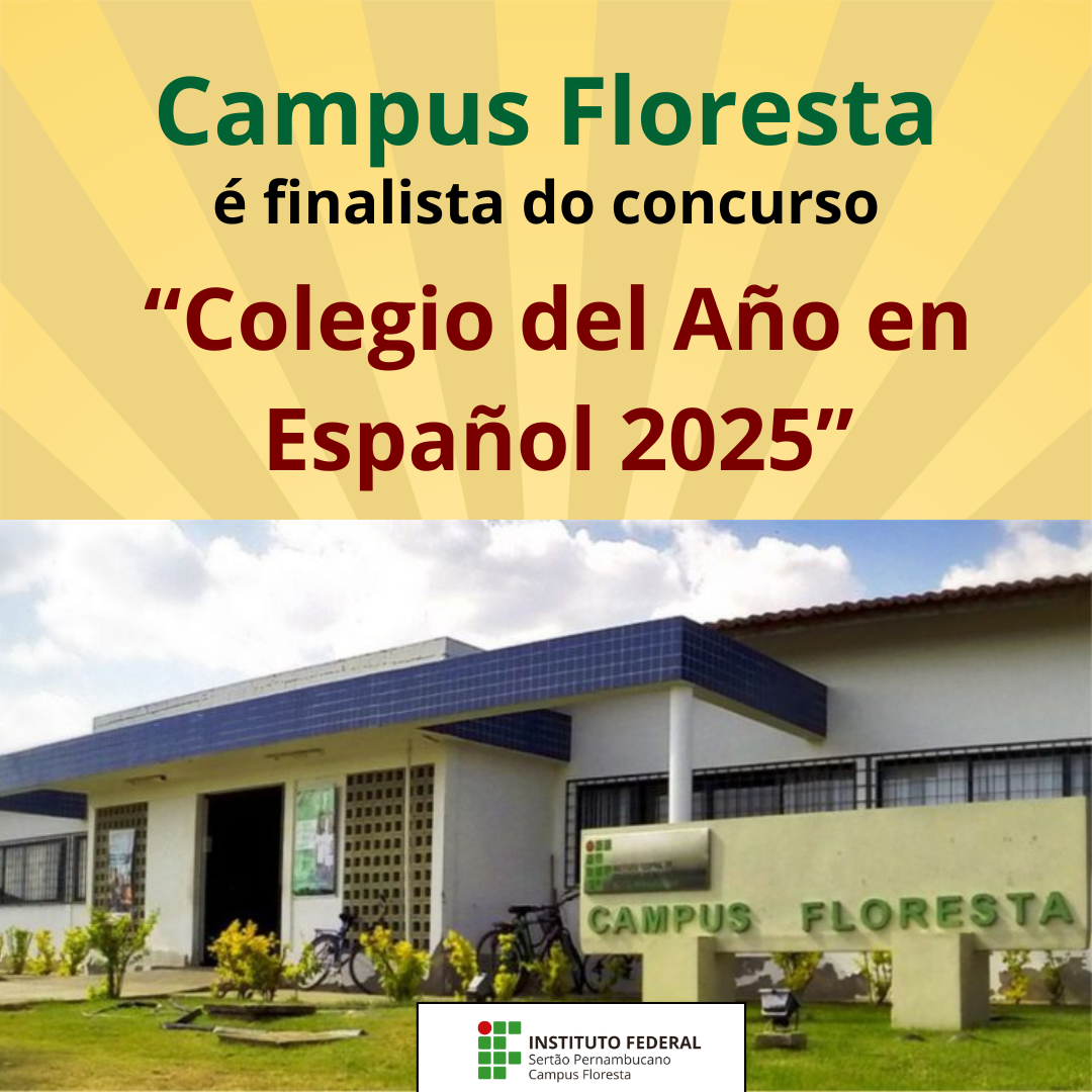 O campus Floresta do Instituto Federal do Sertão Pernambucano (IFSertãoPE) foi selecionado entre os finalistas da 7ª edição do Concurso “Colegio del Año en Español 2025”, promovido pela Consejería de Educación da Embaixada da Espanha no Brasil, vinculada ao Ministério da Educação, Formação Profissional e Desportos da Espanha.