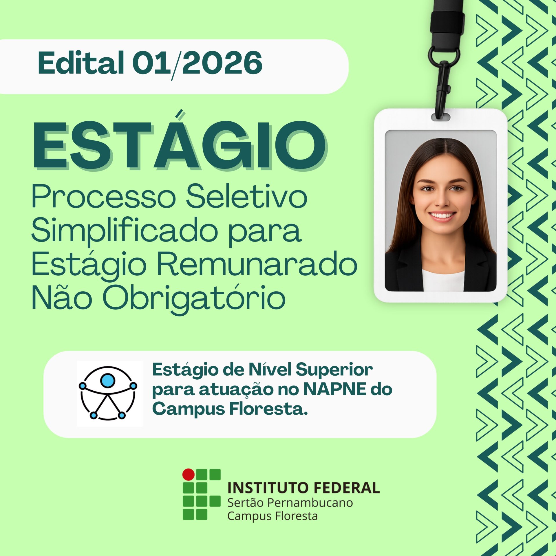 O Instituto Federal do Sertão Pernambucano (IFSertãoPE), Campus Floresta, publicou, nesta terça-feira (06), o Edital nº 001/2026, referente ao processo seletivo simplificado para estágio remunerado não obrigatório. A seleção visa preencher 02 (duas) vagas, sendo 01 (uma) para estudantes de graduação e 01 (uma) para estudantes de pós-graduação lato sensu, para atuação no Núcleo de Atendimento a Pessoas com Necessidades…