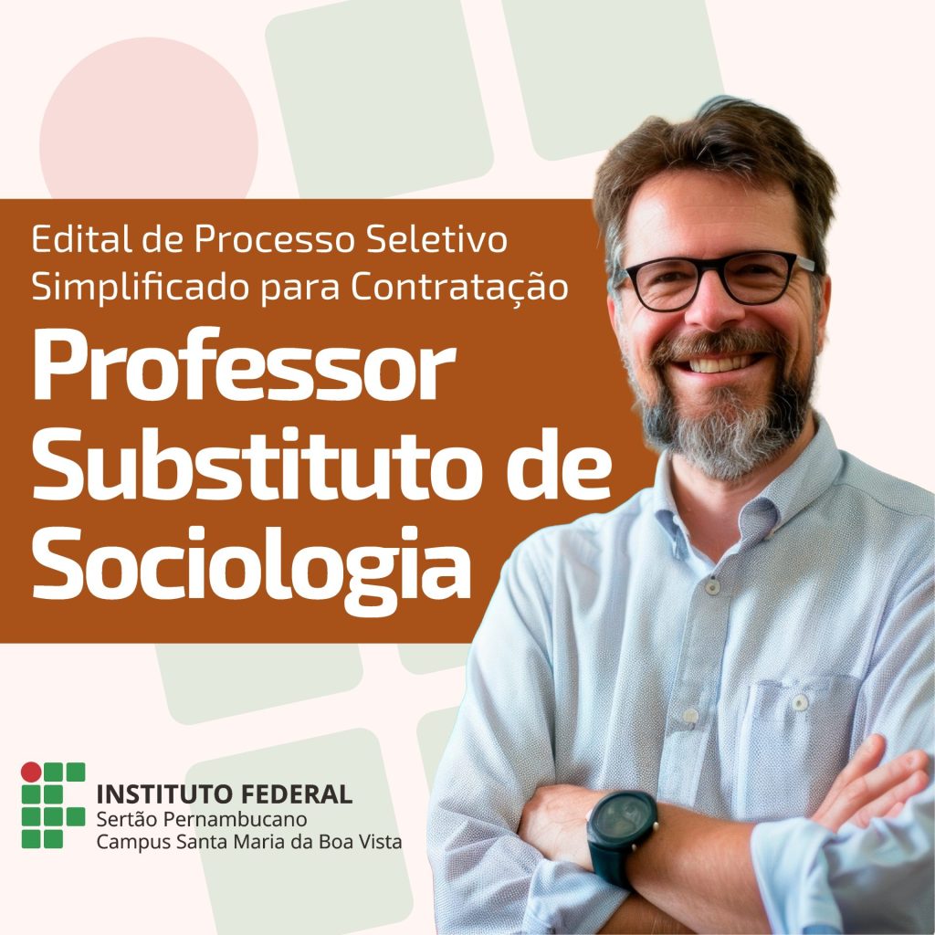 O Instituto Federal do Sertão Pernambucano (IFSertãoPE) publicou, nesta quarta-feira (18), o Edital nº 35/2026, referente ao processo seletivo simplificado para contratação de professor substituto. A seleção oferece uma vaga imediata para a área de Sociologia, com lotação no Campus Santa Maria da Boa Vista, em regime de trabalho de 40 horas semanais.