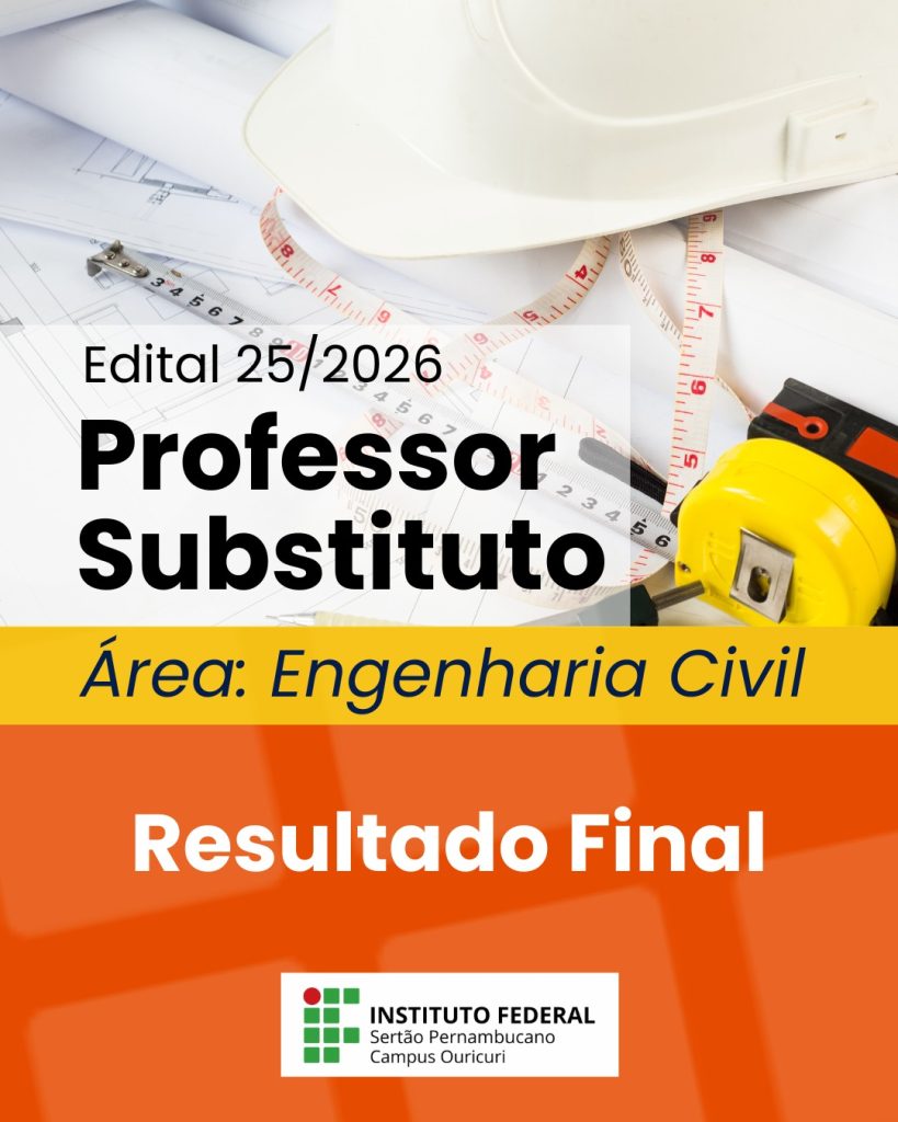 O Instituto Federal do Sertão Pernambucano (IFSertãoPE) publicou, nesta terça-feira (31), o Resultado Final referente ao Edital nº 25/2026. O certame trata do processo seletivo simplificado para a contratação de professor substituto na área de Engenharia Civil para o Campus Ouricuri.