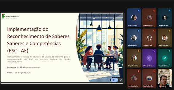 O Instituto Federal do Sertão Pernambucano (IFSertãoPE) deu um passo importante para a implementação do Reconhecimento de Saberes e Competências dos Técnicos-Administrativos em Educação (RSC-TAE) com a formalização de um Grupo de Trabalho (GT) responsável por planejar e coordenar esse processo, por meio da Portaria nº 1087/IFSertãoPE, de 30 de março de 2026.