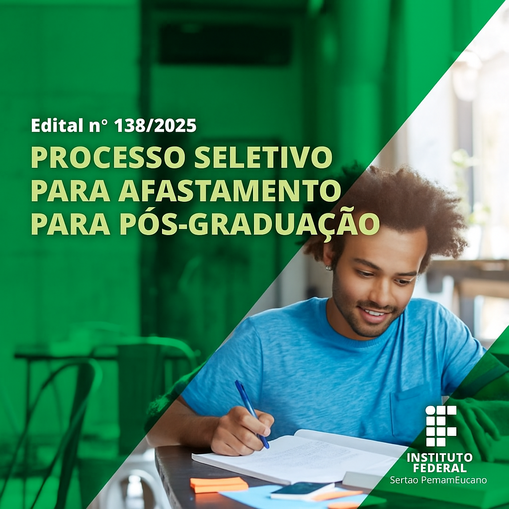 O Instituto Federal do Sertão Pernambucano (IFSertãoPE) publicou, nesta quarta-feira (1.º), o edital n.º 138/2025, referente à abertura de inscrições para servidores interessados em se afastarem integralmente para cursar pós-graduação stricto sensu ou estudo no exterior.