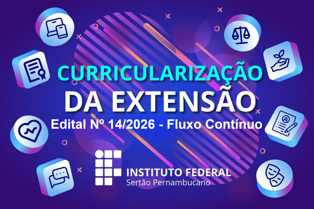 O Instituto Federal do Sertão Pernambucano (IFSertãoPE), por meio da Pró-Reitoria de Extensão e Cultura (Proext),  publicou, nesta segunda-feira (26), o Edital nº 14/2026. O edital é referente à chamada interna de fluxo contínuo para cadastro de projetos de Extensão destinados ao cumprimento da carga horária da Curricularização da Extensão nos cursos de graduação da instituição.