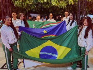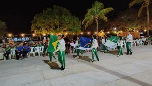 A cerimônia seguiu com o desfile das bandeiras do Brasil, de Pernambuco, Petrolina e do IFSertãoPE. Em seguida, desfilaram as delegações, que foram calorosamente recebidas pelos colegas. A Coordenadora do Núcleo de Inovação Tecnológica (Nit) da Pró-Reitoria de Pesquisa, Inovação e Pós-Graduação do IFSertãoPE, Fernanda Rocha, cantou o Hino Nacional.