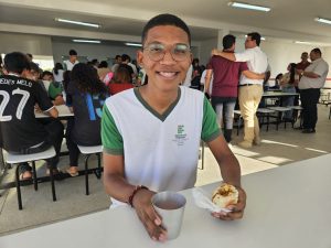 Breno cursa o 3º ano do curso Técnico em Agropecuária integrado ao Ensino Médio e celebrou a inauguração do refeitório.