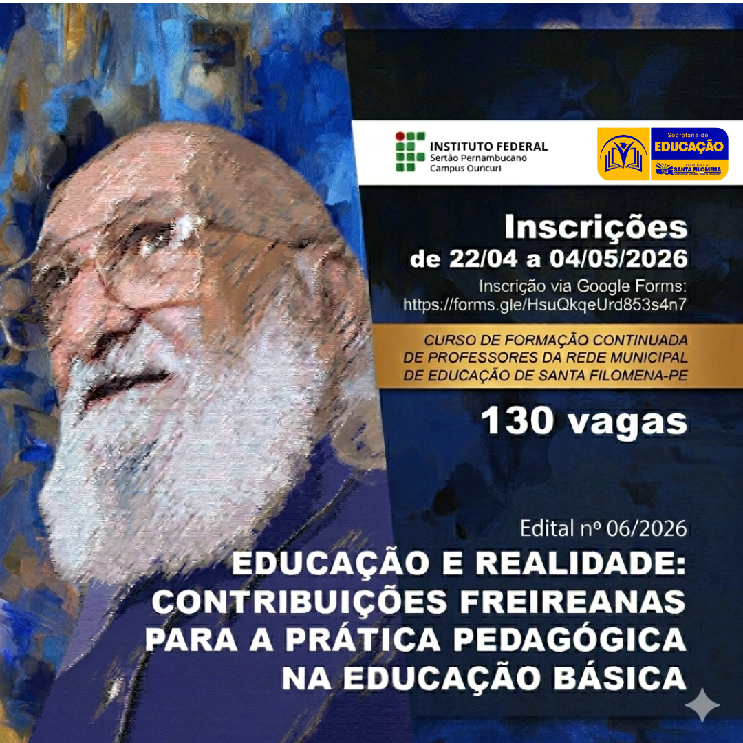 O Campus Ouricuri do Instituto Federal do Sertão Pernambucano (IFSertãoPE), por meio da Coordenação de Relações Organizacionais e do projeto “Núcleo de Extensão – Educação e Realidade: Metodologia Freireana”, lançou, hoje (22), o Edital nº 06/2026, o qual é relativo à abertura de inscrições para o curso de Formação Continuada de Professores da Rede Municipal de Educação de Santa Filomena…
