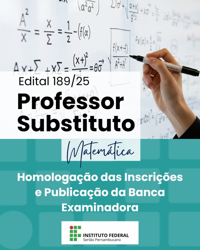 O Instituto Federal do Sertão Pernambucano (IFSertãoPE) divulgou, nesta sexta-feira, a composição da banca examinadora responsável pela  avaliação da Prova de Desempenho Didático e da Avaliação Curricular da seleção complementar para professor substituto de Matemática no campus Ouricuri. O processo é regido pelo Edital n.º 189/2025.