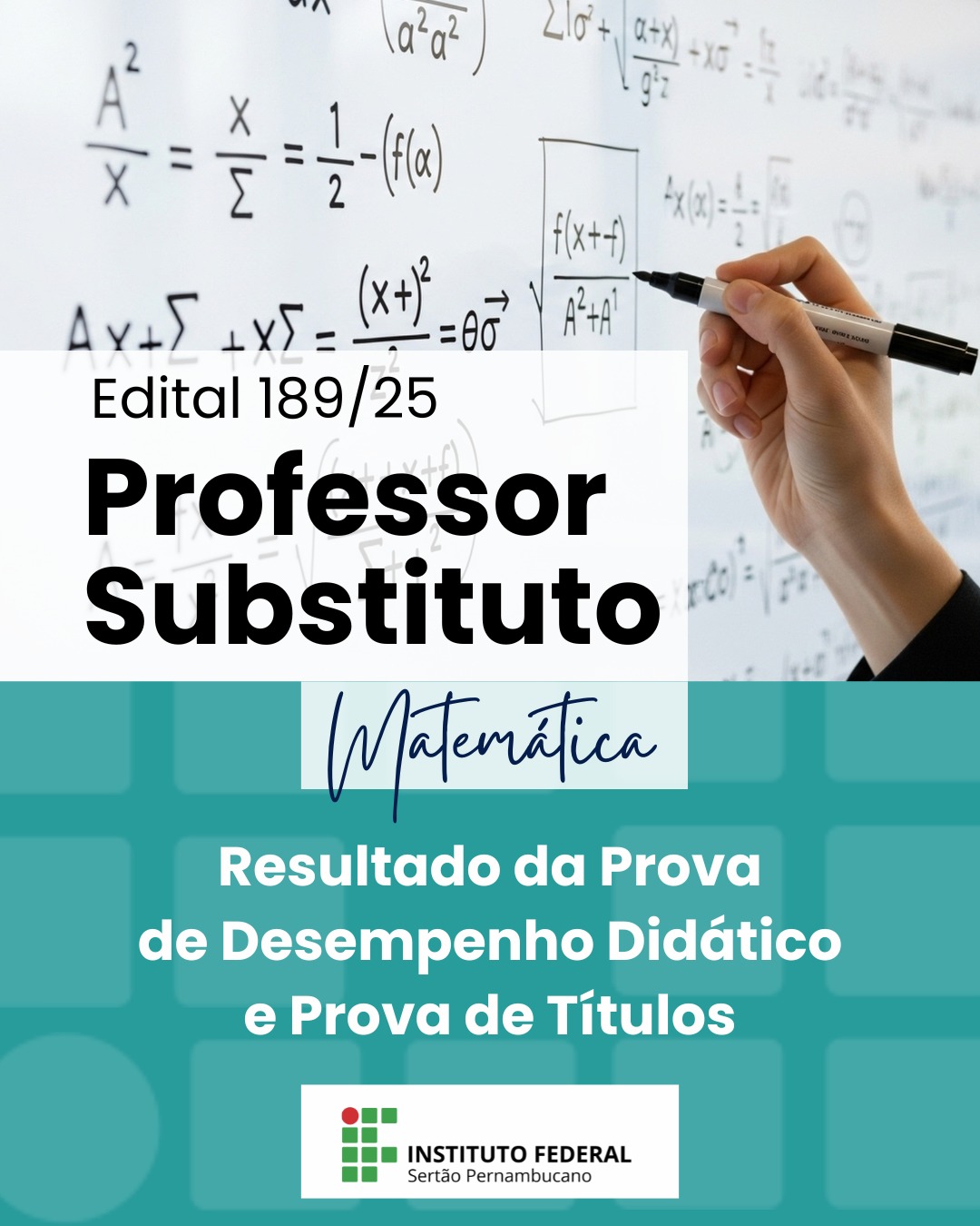 O Instituto Federal do Sertão Pernambucano (IFSertãoPE) divulgou, nesta terça-feira (23), o resultado preliminar das provas de Desempenho Didático e de Títulos do processo seletivo para Professor Substituto de Matemática. O processo é regido pelo Edital n.º 189/2025.