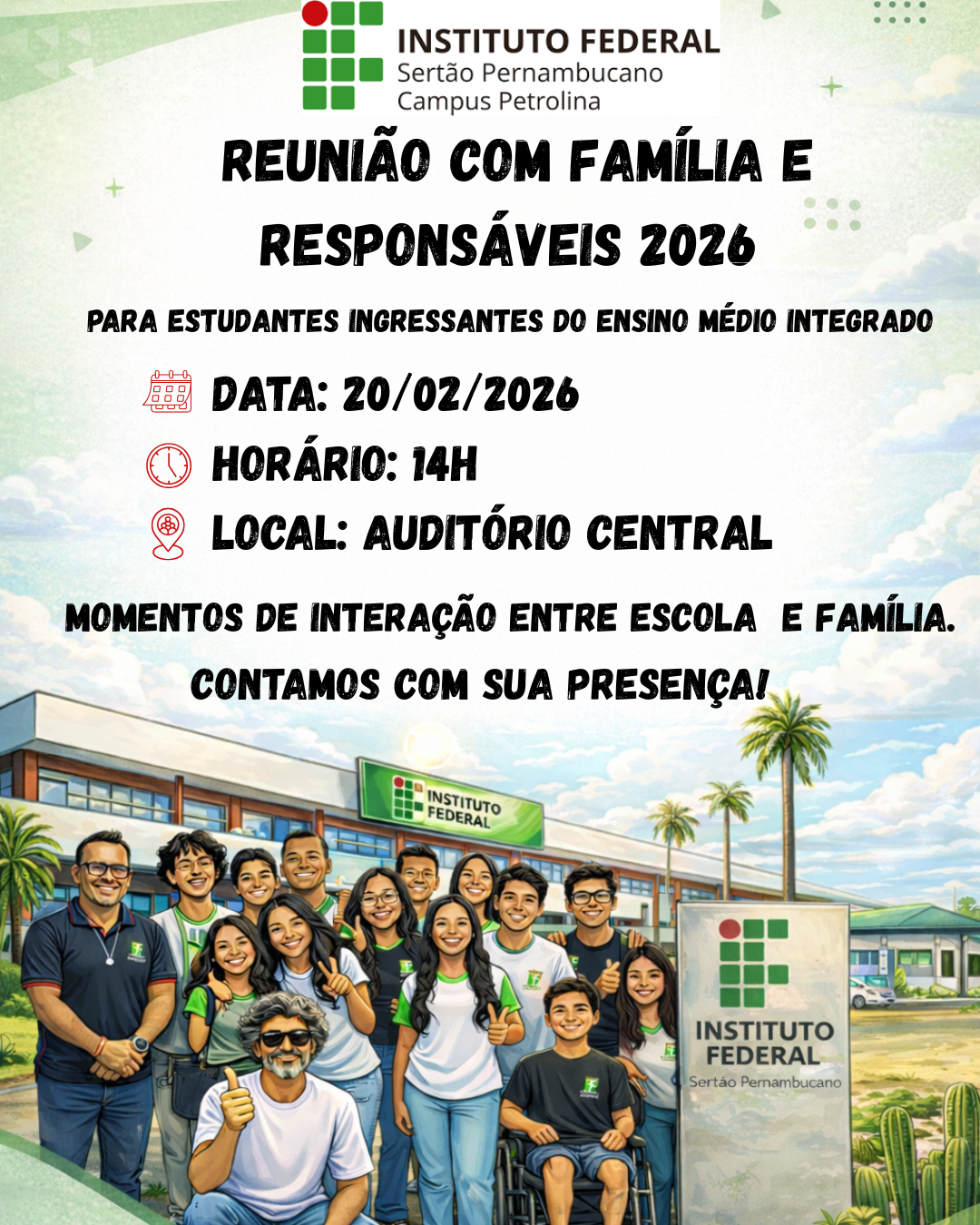 O Auditório Central do campus Petrolina será palco, na segunda-feira (23), a partir das 8h, do Encontro Pedagógico 2026.1. A iniciativa marca o início do semestre letivo e reúne docentes e equipes pedagógicas em uma programação voltada ao alinhamento institucional, ao fortalecimento das práticas educacionais e à consolidação da identidade do IFSertãoPE. Organizado com foco nos desafios contemporâneos da educação,…