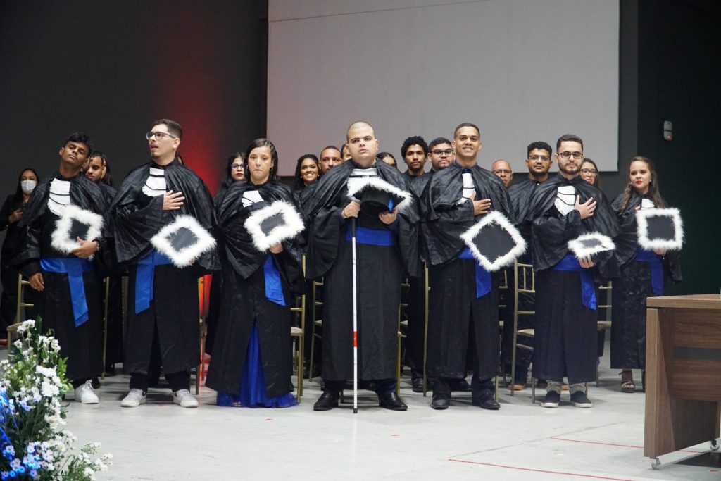A cerimônia foi marcada pela emoção e pelo reconhecimento de trajetórias distintas, mas semelhantes em desafios e superações. Após os juramentos, oradores e oradoras revisitaram o início das jornadas acadêmicas e percalços encontrados nos caminhos. Um deles foi Ildemar Alcântara, orador da turma de Licenciatura em Música, que, com muita emoção, refletiu sobre a conquista. “Não é possível traduzir o que passamos nessa caminhada, que não foi fácil, mas que, com o apoio dos amigos, familiares e servidores, conseguimos trilhar. Saibam que na realização desse sonho há um pedacinho de cada um de vocês”, declarou.
