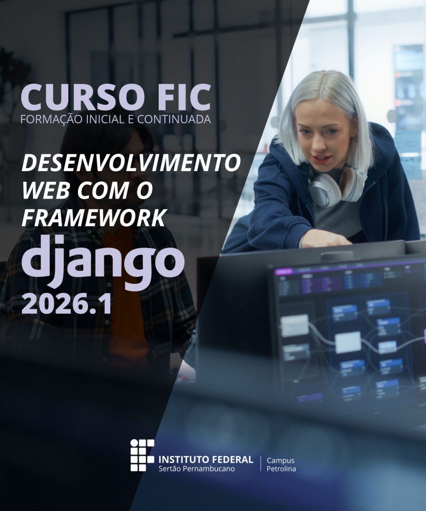 O Instituto Federal do Sertão Pernambucano (IFSertãoPE), Campus Petrolina, está com inscrições abertas para o curso “Introdução ao Desenvolvimento Web com o Framework Django”. A iniciativa oferece formação gratuita na modalidade de Educação a Distância (EAD), com encontros remotos, e tem como objetivo capacitar estudantes para o desenvolvimento de aplicações web utilizando o Django.
