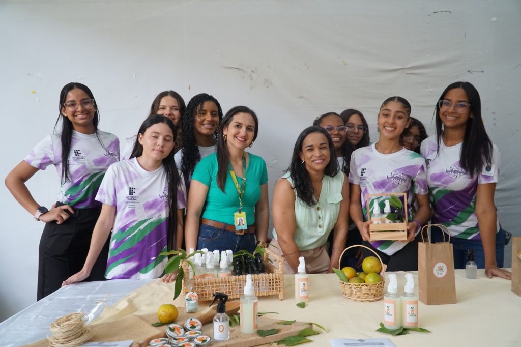 Projetos com aplicação prática também estiveram em destaque, como o desenvolvido por estudantes de Química, orientados pela professora Ana Paula. A turma produziu desodorantes, sprays e pastilhas aromáticas utilizando cascas de laranja. “Foi uma experiência ótima. Aprendemos na prática, produzimos e vendemos nossos produtos. Eu mesma fiz a parte da pastilha, que serve para aromatizar armários e carros”, contou a estudante Maria Eduarda.