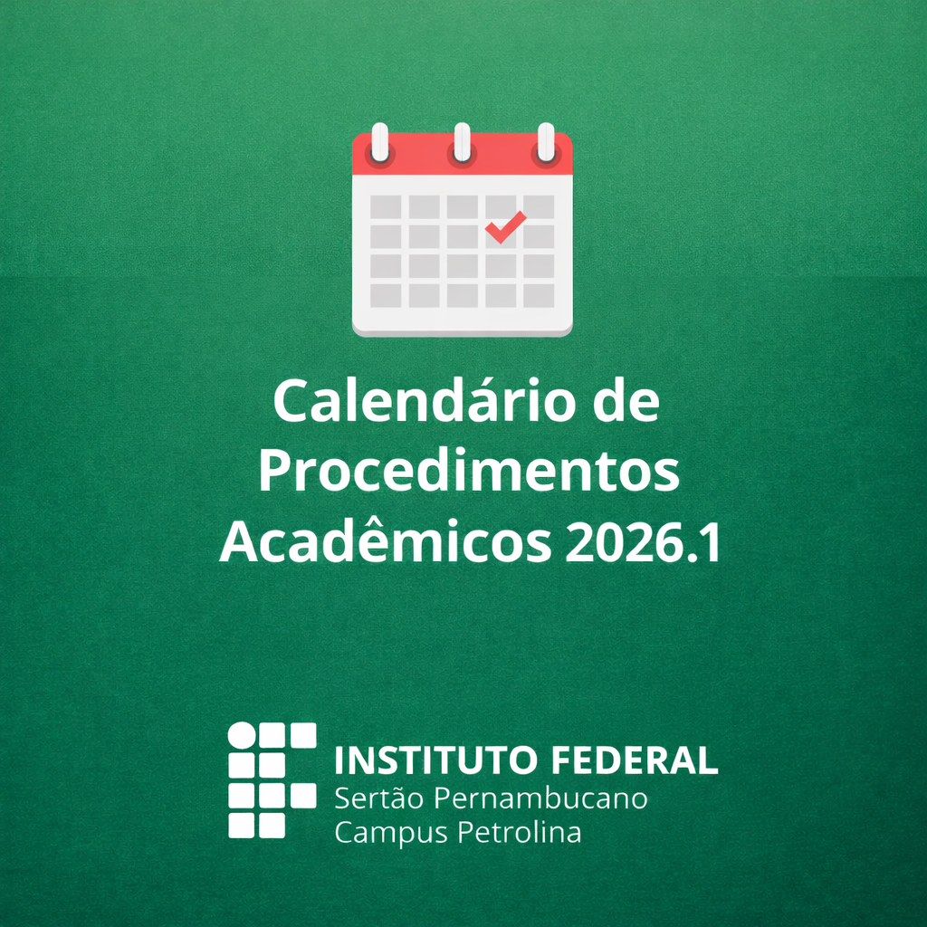 O Departamento Acadêmico, Estágios e Egressos (DAEE) do campus Petrolina do IFSertãoPE divulgou o Calendário de Procedimentos Acadêmicos referente ao semestre 2026.1. O documento orienta alunos e servidores sobre as principais ações e prazos administrativos para ajustes acadêmicos.