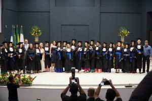 Após discurso de paraninfos e homenagens aos mestres, a reitora Leopoldina Veras finalizou a solonedidade, colocando a institução à disposição e desejando sucesso aos novos profissionais.