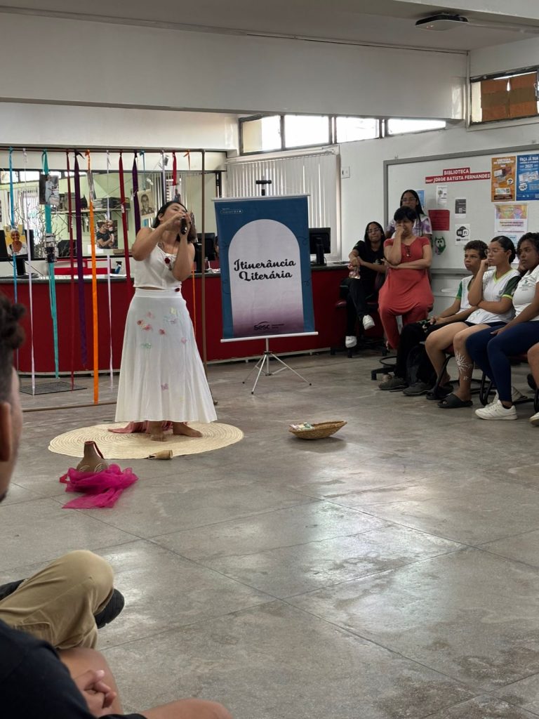 Nos dias 31 de julho e 1º de agosto, o Campus Petrolina do IFSertãoPE recebeu o projeto Itinerância Literária, promovido pelo Sesc. A iniciativa trouxe para a instituição uma oficina de escrita poética e o espetáculo Maria de Cá, uma intervenção literária que entrelaça poesia, performance e música, com a presença do universo feminino sertanejo.
