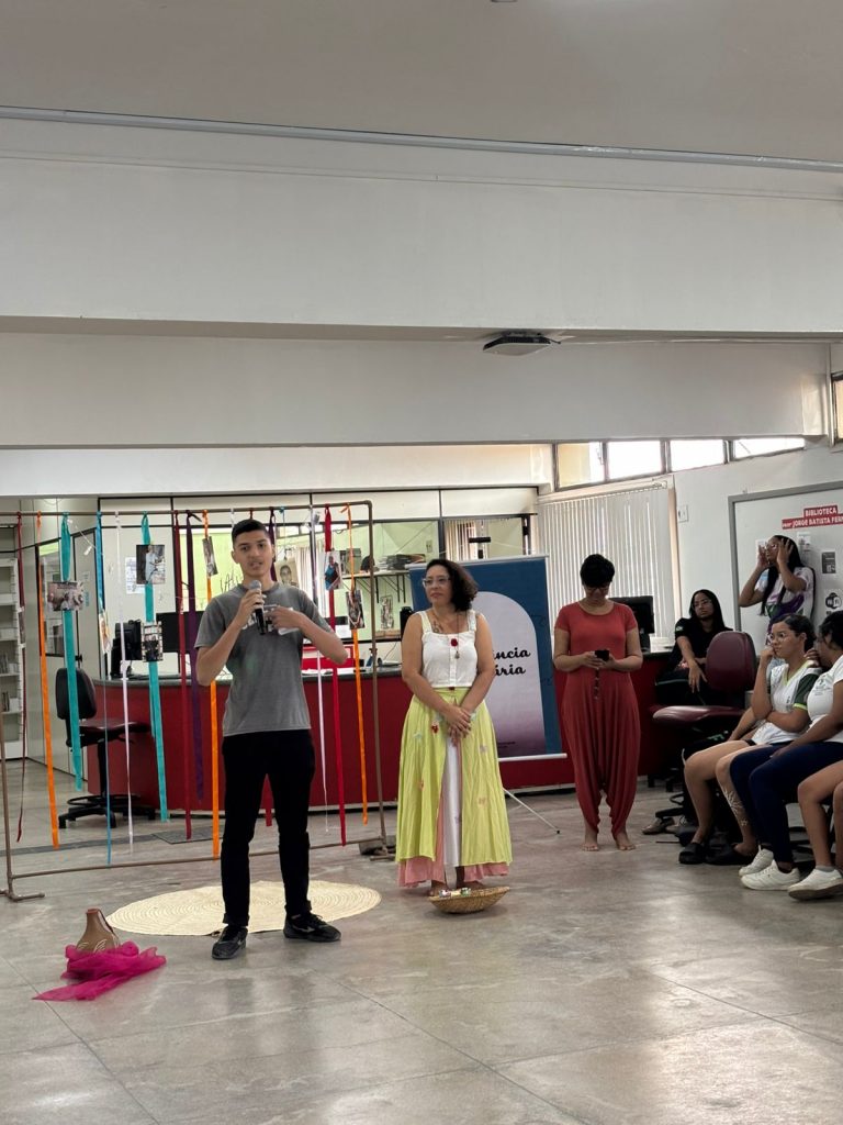 Já na sexta-feira (1º), a Biblioteca do Campus se transformou em palco para a apresentação de Maria de Cá, um espetáculo que mergulha nas poéticas femininas ribeirinhas por meio de um formato híbrido que une literatura, performance e música. Com direção e concepção de Pok Ribeiro, a intervenção reuniu cinco poemas do livro Os dedos de Maria, um conto de Ana Júlia Lima e canções interpretadas ao vivo pela cantora Débora de Uauá.