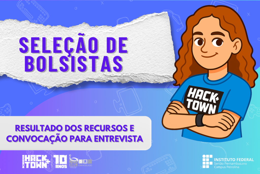O Campus Petrolina do IFSertãoPE publicou, nesta sexta-feira (10/10), a Convocação das Entrevistas do processo seletivo para bolsistas do projeto Academia HackTown+, regido pelo Edital 29/205. Além disso, foi disponibilizado o resultado parcial após recursos.