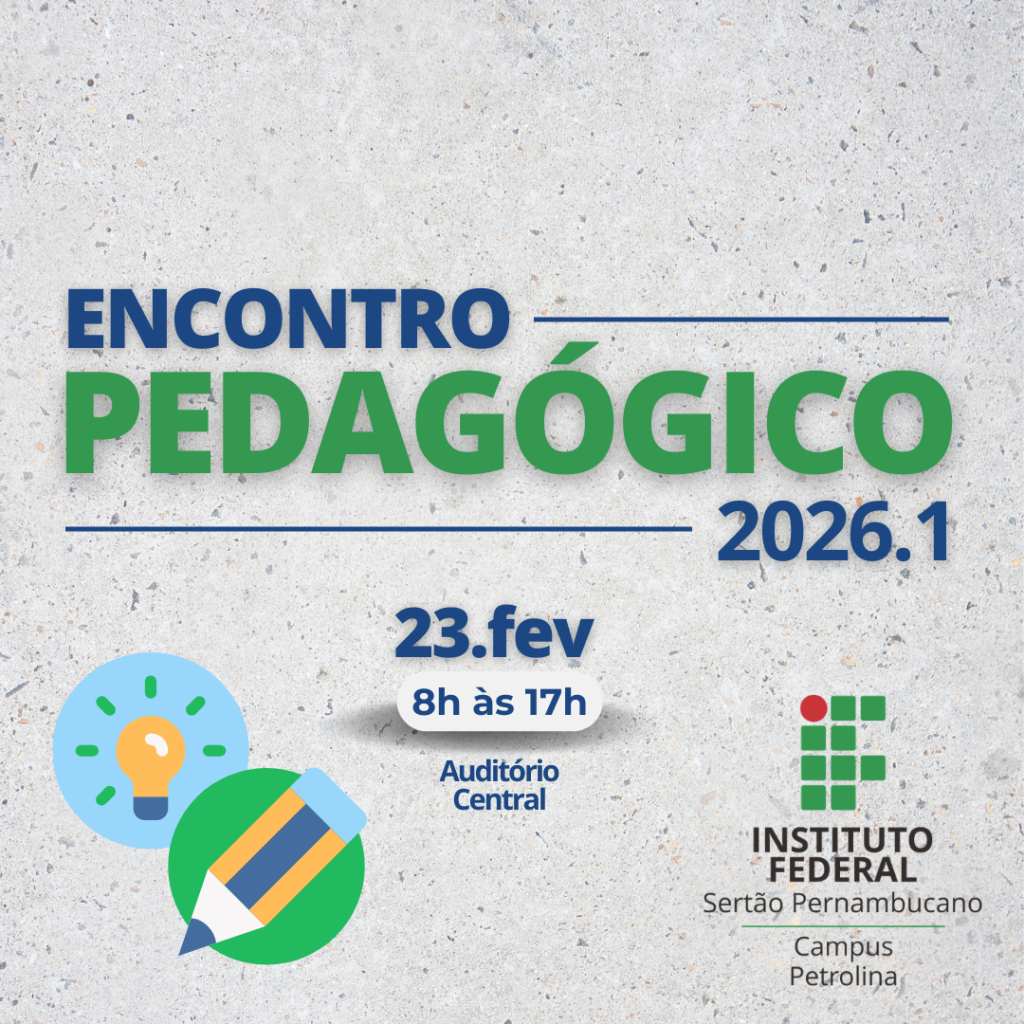 O Auditório Central do campus Petrolina será palco, na segunda-feira (23), a partir das 8h, do Encontro Pedagógico 2026.1. A iniciativa marca o início do semestre letivo e reúne docentes e equipes pedagógicas em uma programação voltada ao alinhamento institucional, ao fortalecimento das práticas educacionais e à consolidação da identidade do IFSertãoPE.