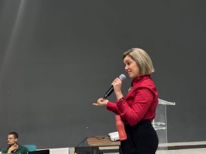 O destaque da manhã foi a palestra “Perspectivas no ensino e adaptação na prática: o que explica o currículo inclusivo?”, ministrada por Cíntia Dantas Matos Freitas, do Instituto NEUROpsique. Em sua fala, a convidada ressaltou a importância de abrir espaço para a reflexão sobre inclusão. “Tirar um tempo para refletir sobre algo que muitos professores ainda não vivenciaram é maravilhoso e positivo. A partir do momento em que se escuta e se compreende, isso passa a ser recorrente na prática profissional. O novo pode assustar, mas precisamos entender que todos os dias são diferentes e exigem adaptação constante”, afirmou.