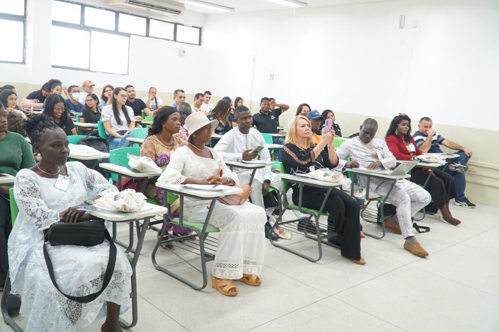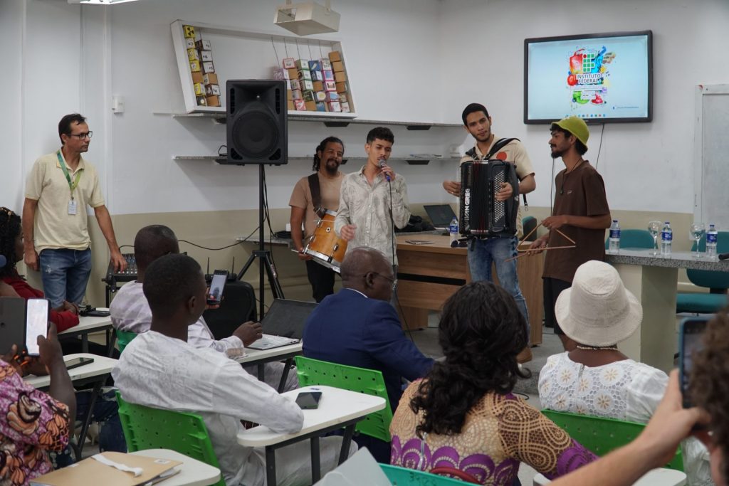 Com muita alegria e apresentação musical de ritmos nordestinos, a delegação foi recebida na tarde desta segunda-feira (19), no auditório do curso de Química do campus Petrolina. Além de estudantes e servidores, estiveram presentes o coordenador técnico de Cooperação Internacional do Ministério da Agricultura, Pecuária e Pesca (MAEP), da República do Benin, Flavien Désiré; o Analista de Projetos da Agência Brasileira de Cooperação (ABC), vinculada ao Ministério das Relações Exteriores (MRE), Isaac José Barbosa Vergne; o reitor do IFSertãoPE, Jean Carlos Coelho, o diretor-geral do campus Petrolina, Clésio Jonas, a coordenadora de relações internacionais, Sarah Rachel Lino, o coordenador Técnico do Projeto ‘Caju Benin’, Paulo Dalmás; o coordenador do curso superior em tecnologia de alimentos, Marcelo Olinda e a professora e ex-reitora, Maria Leopoldina Veras Camelo, que assinou o projeto enquanto gestora.