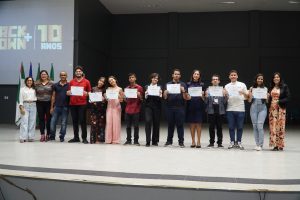 Na noite da última terça-feira (02), com muita alegria, cerca de 208 crianças e adolescentes receberam certificados de conclusão dos cursos da Academia Hacktown. Em 16 turmas, durante os meses de abril e junho, foram ofertados os cursos de ‘Design Criativo e Expressão Visual Canva’, ‘Criatividade em Blocos: LEGO Lab’, ‘Micromundo Arduinolandia’, ‘Ideias em Movimento: Criatividade com Godot Game Engine’ e ‘Código Criativo em Web Front’.