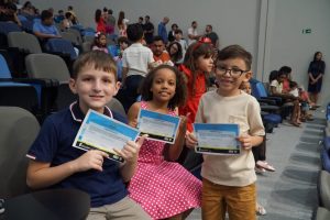 Na noite da última terça-feira (02), com muita alegria, cerca de 208 crianças e adolescentes receberam certificados de conclusão dos cursos da Academia Hacktown. Em 16 turmas, durante os meses de abril e junho, foram ofertados os cursos de ‘Design Criativo e Expressão Visual Canva’, ‘Criatividade em Blocos: LEGO Lab’, ‘Micromundo Arduinolandia’, ‘Ideias em Movimento: Criatividade com Godot Game Engine’ e ‘Código Criativo em Web Front’.