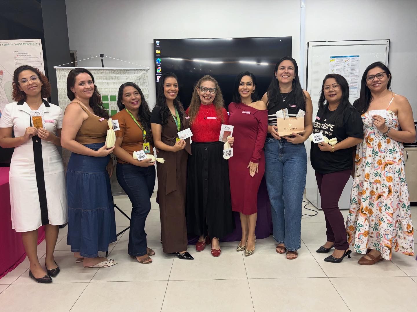 Na tarde desta quinta-feira (26), servidoras do Campus Petrolina participaram de um momento de diálogo e aprendizado com a realização da palestra “Capital Visual: Como se vestir para o trabalho”. A atividade, realizada em alusão ao Mês da Mulher, ocorreu na Sala da Direção-Geral e promoveu reflexões sobre a imagem profissional no ambiente institucional.