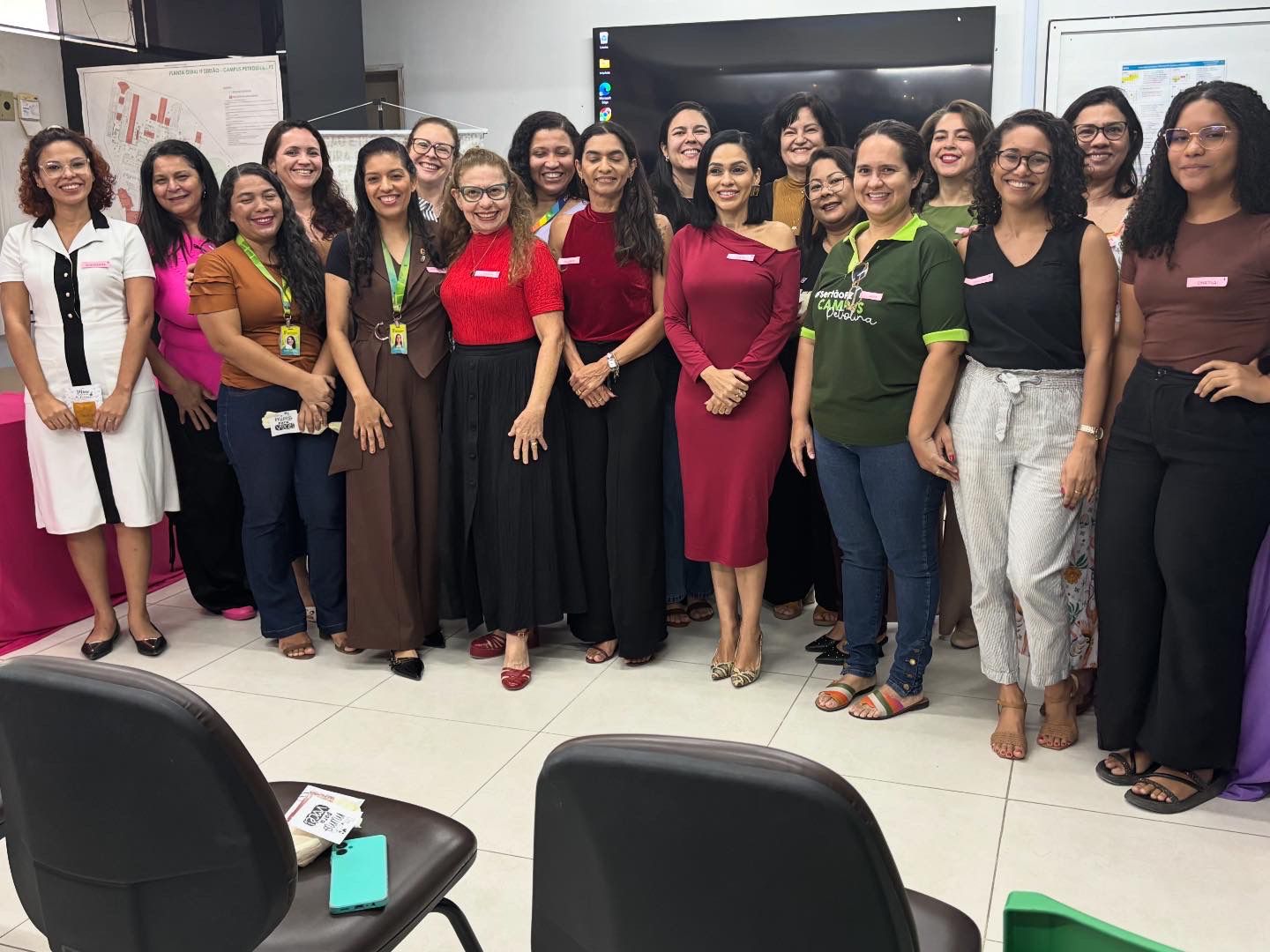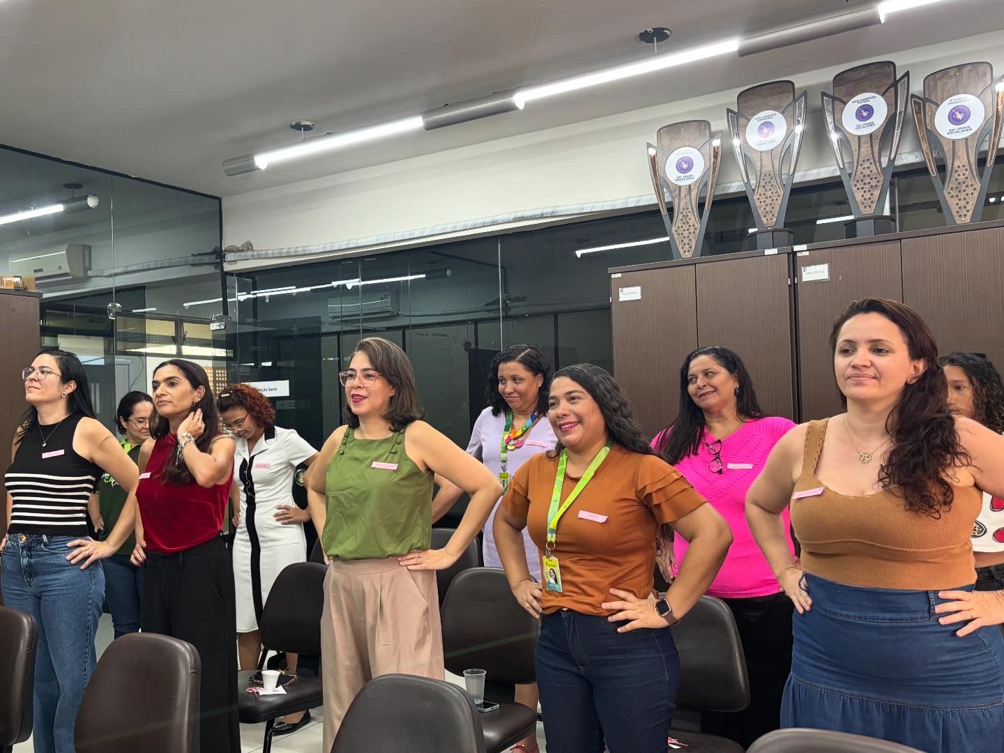 Além disso, o momento contou com dinâmicas de integração entre as participantes, favorecendo a troca de experiências de forma mais acolhedora e participativa. A atividade também abriu espaço para reflexões mais amplas sobre identidade, postura e valorização profissional.