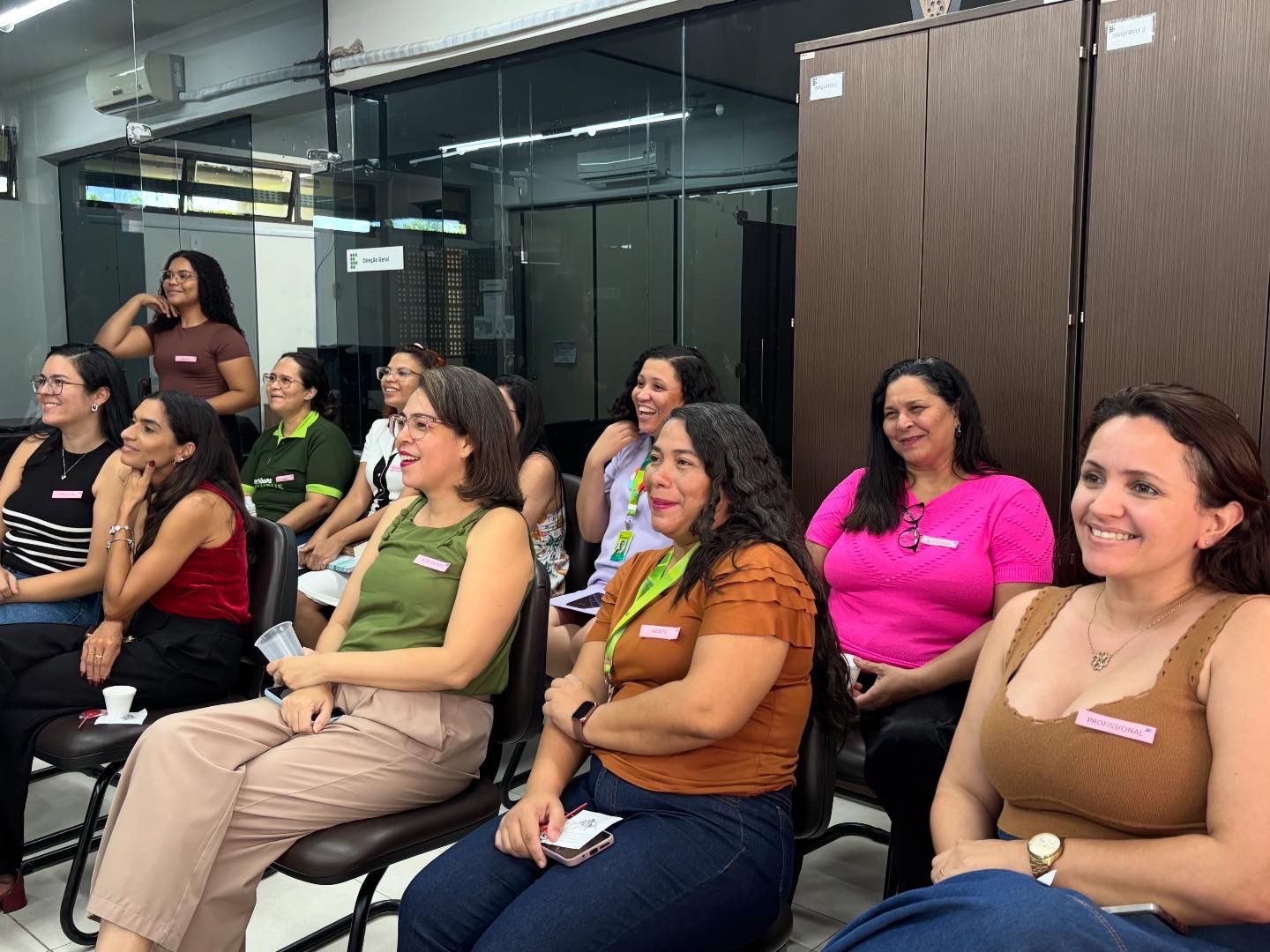 Além disso, o momento contou com dinâmicas de integração entre as participantes, favorecendo a troca de experiências de forma mais acolhedora e participativa. A atividade também abriu espaço para reflexões mais amplas sobre identidade, postura e valorização profissional.
