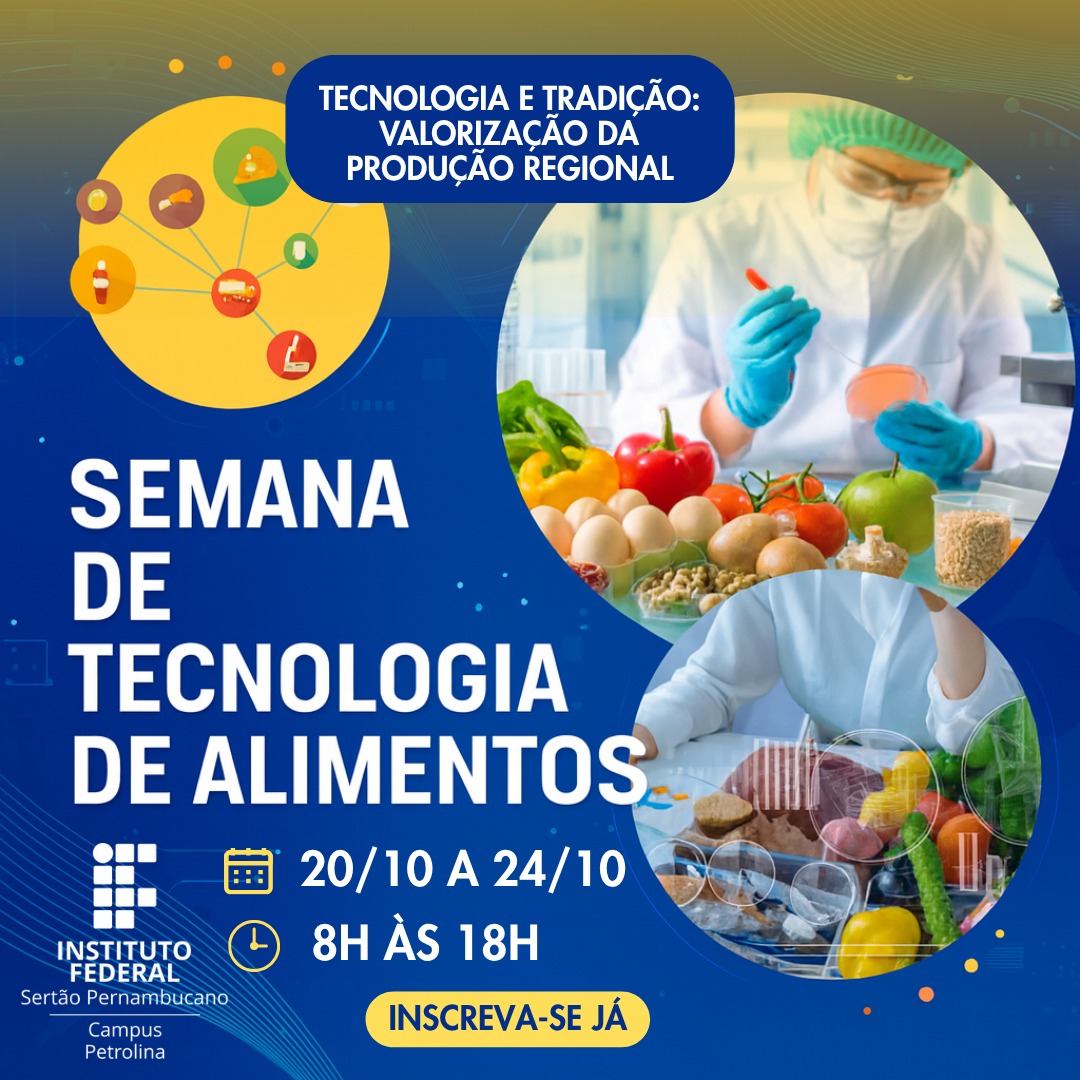 Entre os dias 20 e 24 de outubro, o campus Petrolina do IFSertãoPE promoverá a Semana de Tecnologia em Alimentos. Com a temática ‘Tecnologia e tradição: valorização da produção regional’, o evento conta com programação com atividades diversas, como minicursos, oficinas, mesas-redondas e palestras. Planejado pela coordenação do curso, assuntos atuais e relevantes para formação e capacitação dos profissionais serão…