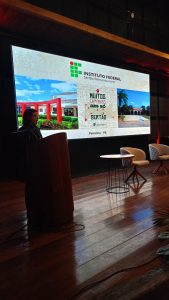 Na sessão dedicada às apresentações institucionais, o IFSertãoPE destacou a sua trajetória acadêmica e de internacionalização, com a oferta de cursos em diferentes níveis de ensino (técnicos, superiores e de pós-graduação) e em áreas estratégicas como Agronomia, Viticultura e Enologia, Engenharia Civil e Arquitetura e Urbanismo. A instituição também apresentou iniciativas inovadoras, como o Centro de Línguas, e projetos de colaboração técnica internacional com instituições da França, Suíça, Portugal, Japão, Hungria, Estados Unidos, Argentina, Uruguai, Peru e Benim.