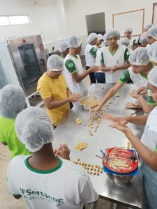 O momento foi iniciado com a apresentação dos objetivos e regras de segurança do laboratório e posterior elaboração de biscoitos de diferentes tipos (amanteigado, acebolado e doces) e encerramento com degustação dos biscoitos fabricados. “Ver a curiosidade dos alunos ganhando forma em projetos práticos é o que nos motiva a continuar”, avalia o monitor José Manoel. Para o professor de Matemática Leonardo Bernardo, a experiência permitiu aos alunos aplicara matemática no seu dia a dia. “Foi uma oportunidade de aprender fazendo, fortalecendo a compreensão e o interesse pelo conteúdo”, explica.