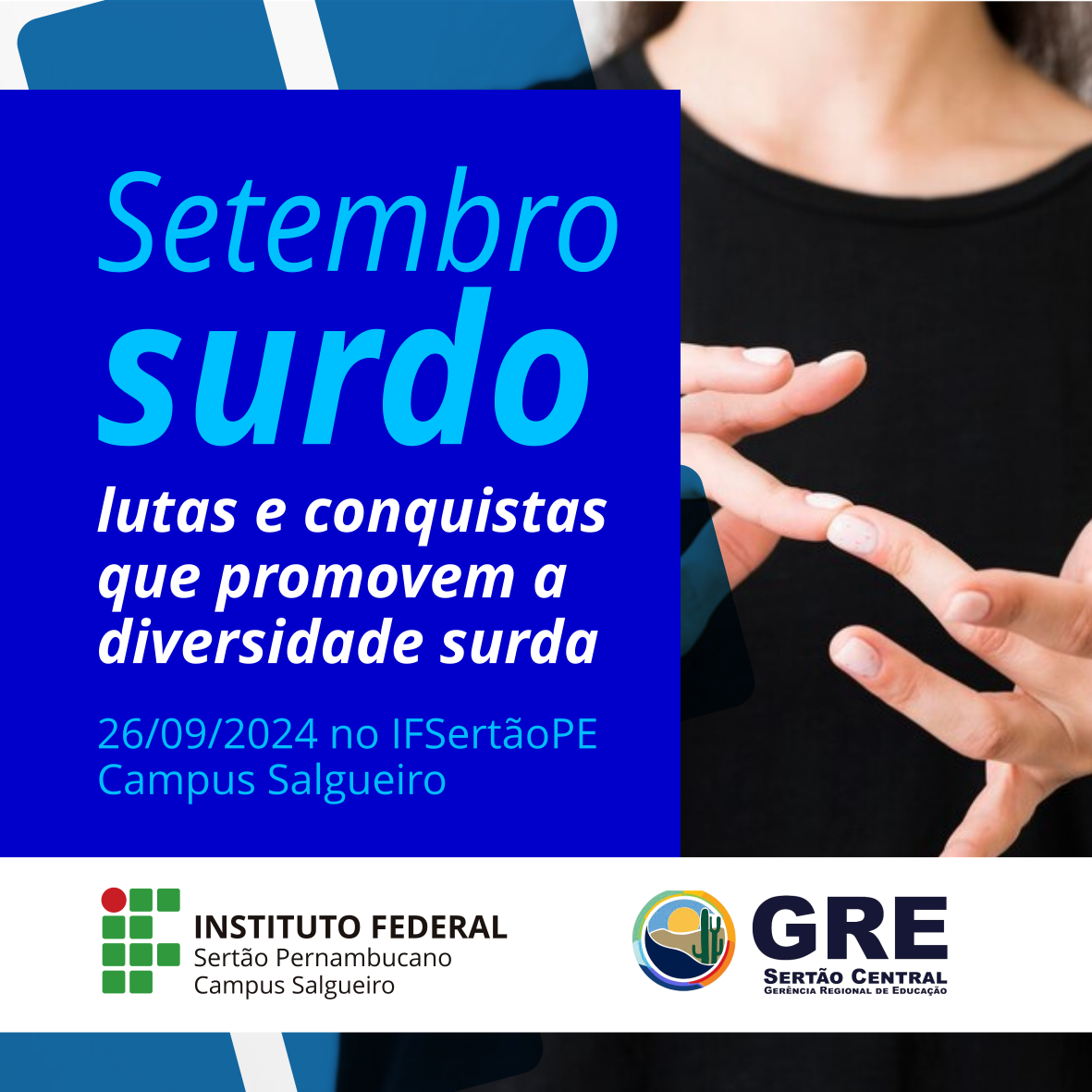 O campus Salgueiro do IFSertãoPE vai promover, nesta quinta-feira (26), o evento “Setembro surdo: lutas e conquistas que promovem a diversidade surda”, que tem como objetivo difundir e conscientizar a comunidade acadêmica para o respeito aos surdos, a sua língua, identidade e existência. De acordo com a organização do evento, Setembro é um mês alusivo as conquistas, movimentos de lutas…