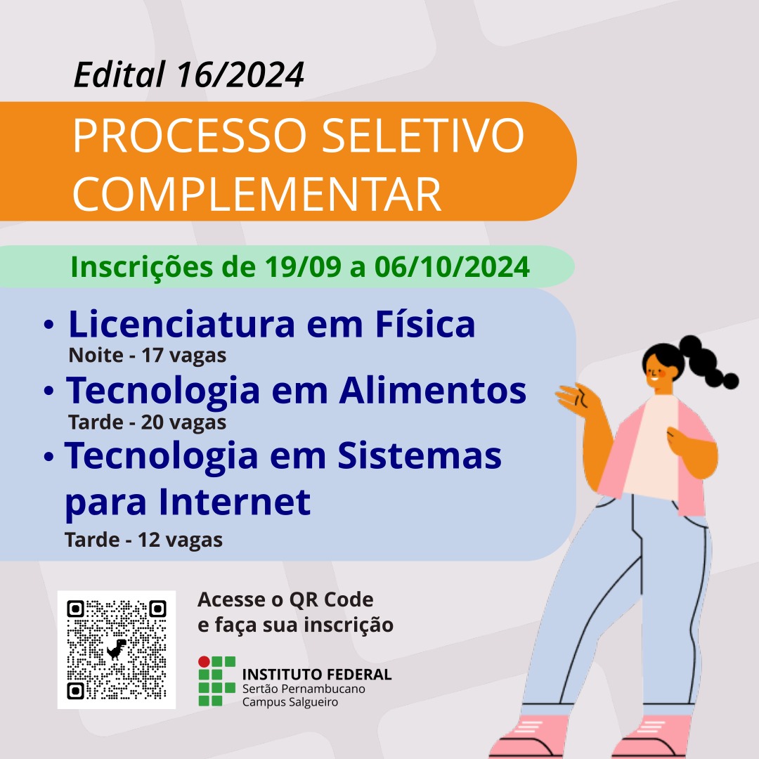 O Instituto Federal do Sertão Pernambucano (IFSertãoPE) lançou o Processo Seletivo para Cursos Técnicos com ingresso em 2026. Nesta edição do processo seletivo, o Campus Salgueiro vai ofertar 204 vagas em cinco turmas. As inscrições, que são gratuitas, começam na próxima terça-feira (12) e seguem até o dia 17 de setembro, conforme retificação do cronograma publicada pela Pró-Reitoria de Ensino…