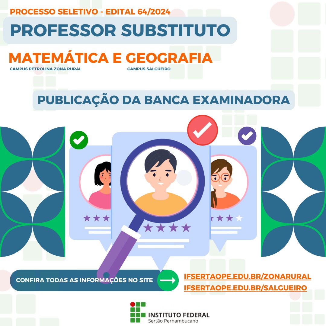 Composição da banca examinadora do edital nº64/2024 é divulgada