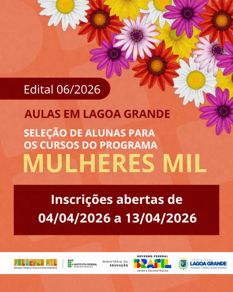 O Campus Santa Maria da Boa Vista do Instituto Federal do Sertão Pernambucano (IFSertãoPE) publicou, nesta quinta-feira, o Edital n.º 6/2026, referente ao processo de seleção para estudantes dos cursos de Formação Inicial e Continuada (FIC) oferecidos pelo programa Mulheres Mil, na modalidade Bolsa-Formação. Ao todo, serão ofertadas 117 vagas para mulheres com 16 anos ou mais e em situação de vulnerabilidade socioeconômica, distribuídas em quatro cursos diferentes: Assistente em Recursos Humanos, Manicure e Pedicure, Salgadeira e Confeiteira. As aulas serão realizadas no município de Lagoa Grande-PE, de forma presencial e em horário noturno.