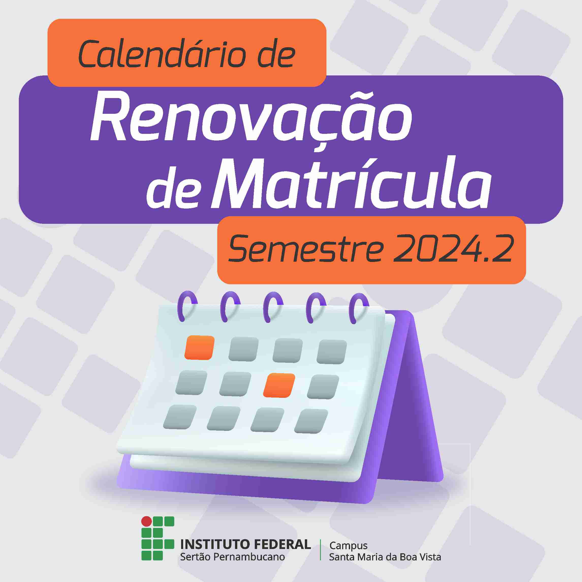 O campus Santa Maria da Boa Vista do Instituto Federal do Sertão Pernambucano (IFSertãoPE) divulgou o calendário de renovação de matrículas e de procedimentos acadêmicos para o semestre 2025.2. Compartilhar conteúdo: Facebook Twitter LinkedIn Pinterest WhatsApp