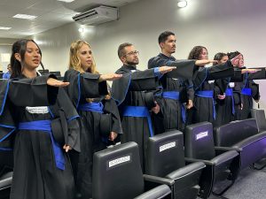 Os formandos foram chamados individualmente para receber seus diplomas, em um clima de festa e emoção. Cada turma teve seu juramentista, que, acompanhado pelos colegas, leu o juramento da profissão, marcando o início oficial de suas carreiras. Thainara Souza, oradora da turma de Engenharia Civil, destacou a união da turma e os desafios superados, especialmente durante a pandemia. “Enfrentamos momentos difíceis, mas descobrimos novas formas de aprender e crescer juntos”, afirmou.