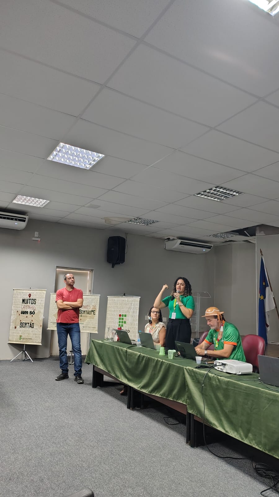 Nesta última quinta (16) e sexta-feira (17), o IFSertãoPE promoveu o Reitoria no Campus, edição Serra Talhada, que contou com a presença do reitor Jean Carlos Coelho de Alencar e de todos os pró-reitores do IFSertãoPE: Adeísa Guimarães, da Pró-Reitoria de Extensão e Cultura; Francisco Gama, da Pró-Reitoria de Pesquisa, Inovação e Pós-Graduação; Eudis Oliveira, da Pró-Reitoria de Ensino; Klemmerson Amariz, da Pró-Reitoria de Desenvolvimento Institucional e Fabrícia Nadja, da Pró-Reitoria de Orçamento e Administração. Além deles, membros do Gabinete da Reitoria e a diretora de Gestão de Pessoas da Instituição, Wyara Espírito Santo, também apresentaram as ações e resultados de suas respectivas áreas.