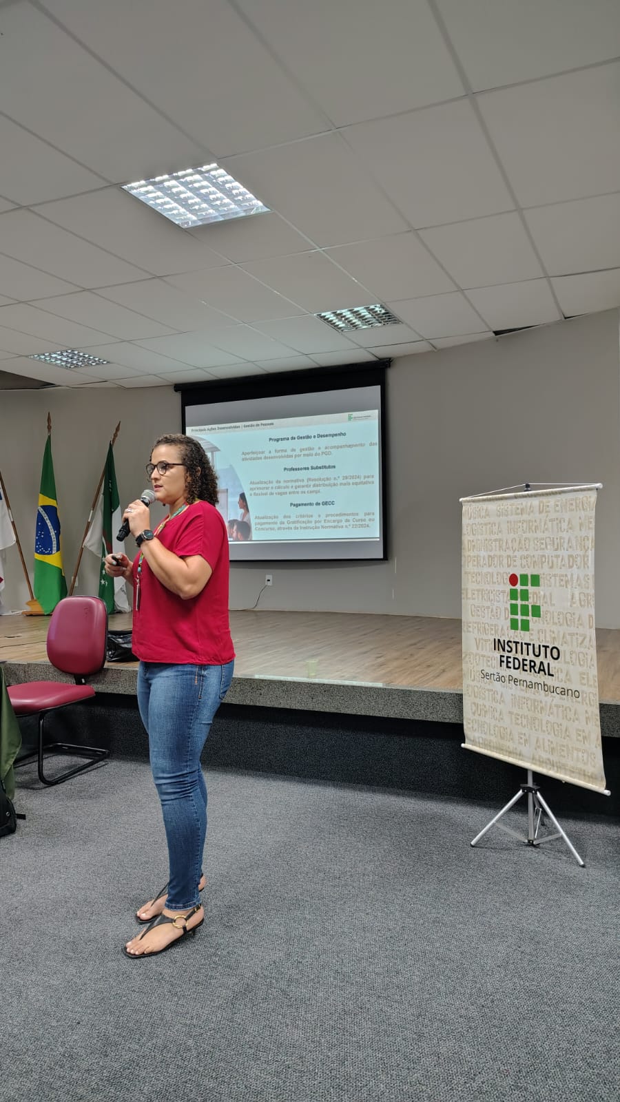 Na tarde da quinta-feira (16), o encontro foi com servidores do campus Serra Talhada, que acompanharem a exposição de conquistas, desafios e planos das Pastas e puderam tirar dúvidas, compartilhar dificuldades e oferecer sugestões à equipe de Gestão. A pró-reitora de Orçamento e Administração, Fabrícia Nadja, aproveitou para entregar ao campus o Troféu Excelência Proad, Gestão com sabor e cuidado, idealizado para o 5º Encontro de Administração e Planejamento do IFSertãoPE, realizado este ano em Floresta, no último mês de agosto.