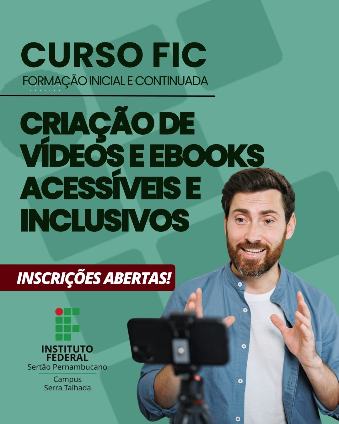 O IFSertãoPE campus Serra Talhada, publicou o Edital nº 04/2026, que regulamenta o processo seletivo para o Curso de Formação Inicial e Continuada (FIC) em Criação de Vídeos e eBooks Acessíveis e Inclusivos. A iniciativa tem como objetivo capacitar participantes para planejar, produzir e publicar conteúdos educativos digitais com foco em acessibilidade e inclusão, atendendo às demandas contemporâneas de comunicação educacional e social.