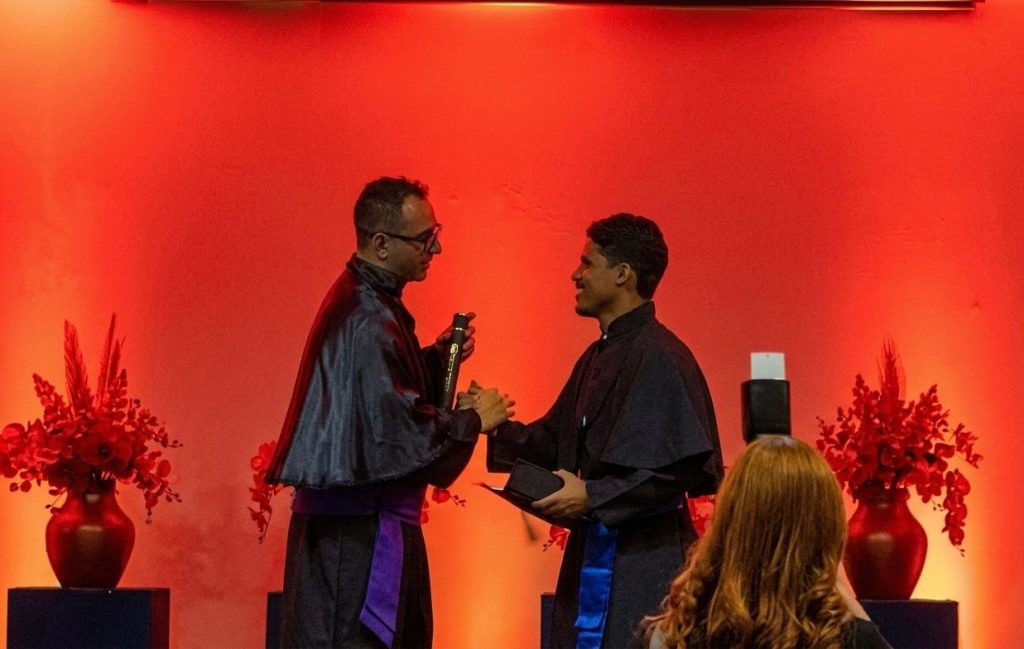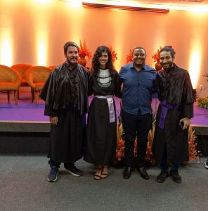 Durante a solenidade, foram realizados os juramentos profissionais, momento em que os concluintes reafirmaram o compromisso ético e social com suas respectivas áreas de atuação. Em seguida, procedeu-se à outorga de grau, formalizando a conclusão dos cursos e conferindo aos estudantes o título de bacharéis em Engenharia Civil e licenciados em Física.