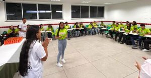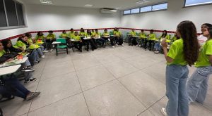 A programação incluiu a distribuição de kits estudantis, compostos por materiais de apoio acadêmico, além de atividades de acolhimento e uma visita guiada às instalações do campus, com o objetivo de promover a ambientação dos participantes ao espaço institucional.