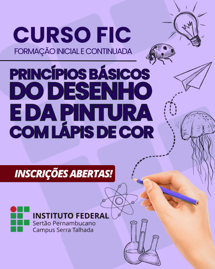O campus Serra Talhada do IFSertãoPE acaba de publicar o edital nº 14/2026, que regulamenta o processo seletivo para o curso de Formação Inicial e Continuada (FIC) intitulado “Princípios Básicos do Desenho e da Pintura com Lápis de Cor”. A iniciativa visa capacitar os participantes em fundamentos de desenho, teoria das cores e técnicas de aplicação prática.
