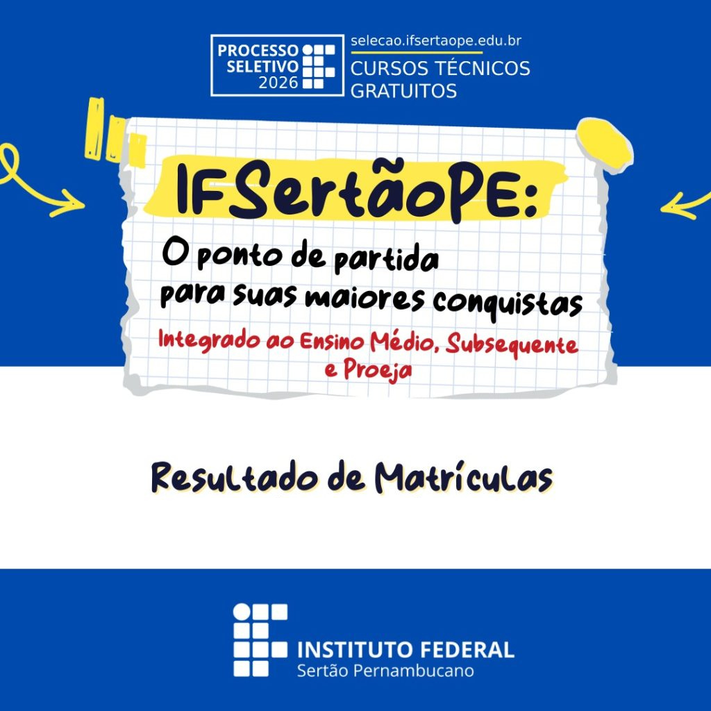 IFSertãoPE divulga resultado preliminar das matrículas do 1º Remanejamento do Processo Seletivo 2026 para o Ensino Médio Integrado