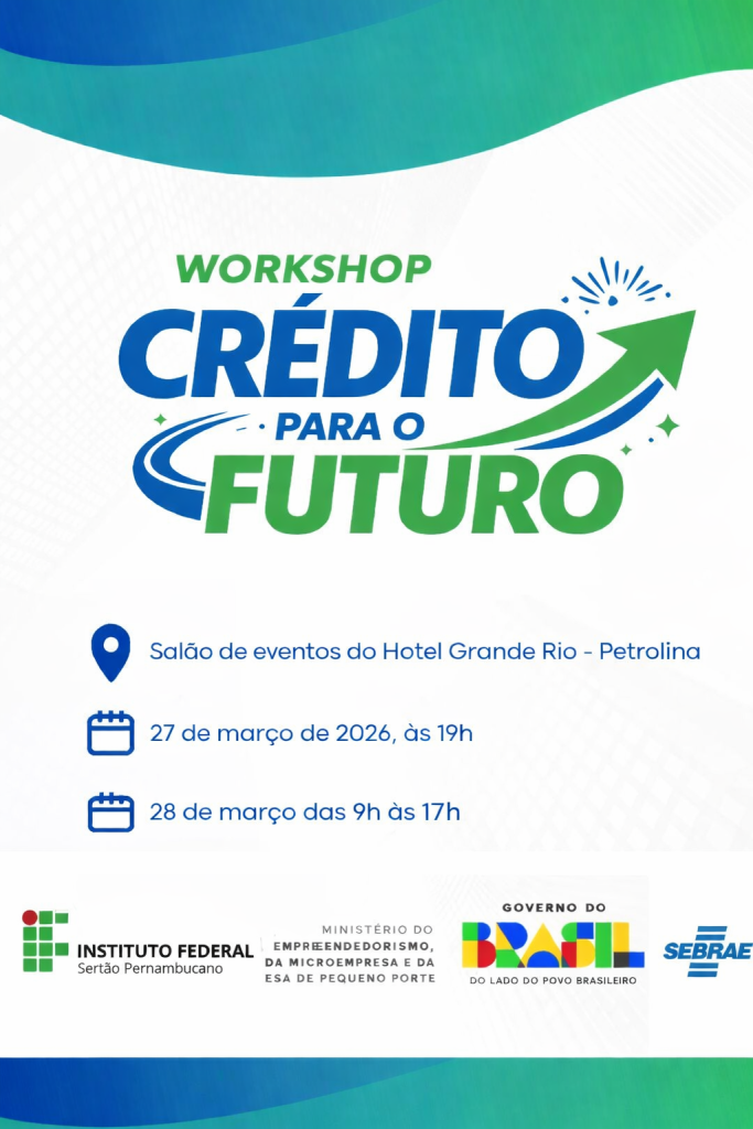 Nos dias 27 e 28 de março, o Ministério do Empreendedorismo, da Microempresa e da Empresa de Pequeno Porte, em parceria com o Instituto Federal do Sertão Pernambucano (IFSertãoPE) e com apoio do Sebrae, realizará, em Petrolina, o Workshop Crédito para o Futuro, com o objetivo de fortalecer o empreendedorismo, apoiar a estruturação de pequenos negócios e contribuir para o desenvolvimento econômico e social da região.